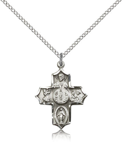 Sterling Silver Four Way Chalice Medal with Chain Pendant