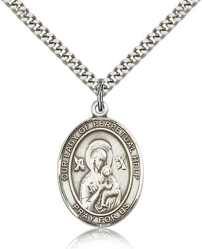 Sterling Silver Our Lady of Perpetual Help Medal with Chain Pendant Large