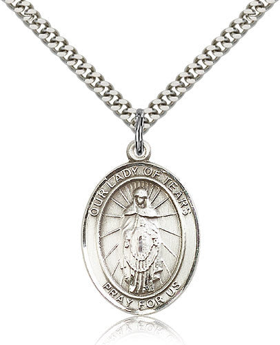 Sterling Silver Our Lady of Tears Medal with Chain Pendant Large