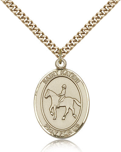 Gold Filled St. Kateri - Equestrian Medal with Chain Pendant