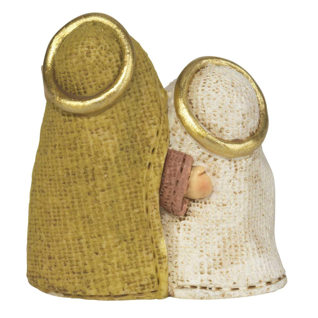 This sweet little Holy Family figurine is a small gift that kids young and old will enjoy at Christmas time. Robes have a burlap texture look and gold star accents. The perfect little gift for students or use as a stocking stuffer!