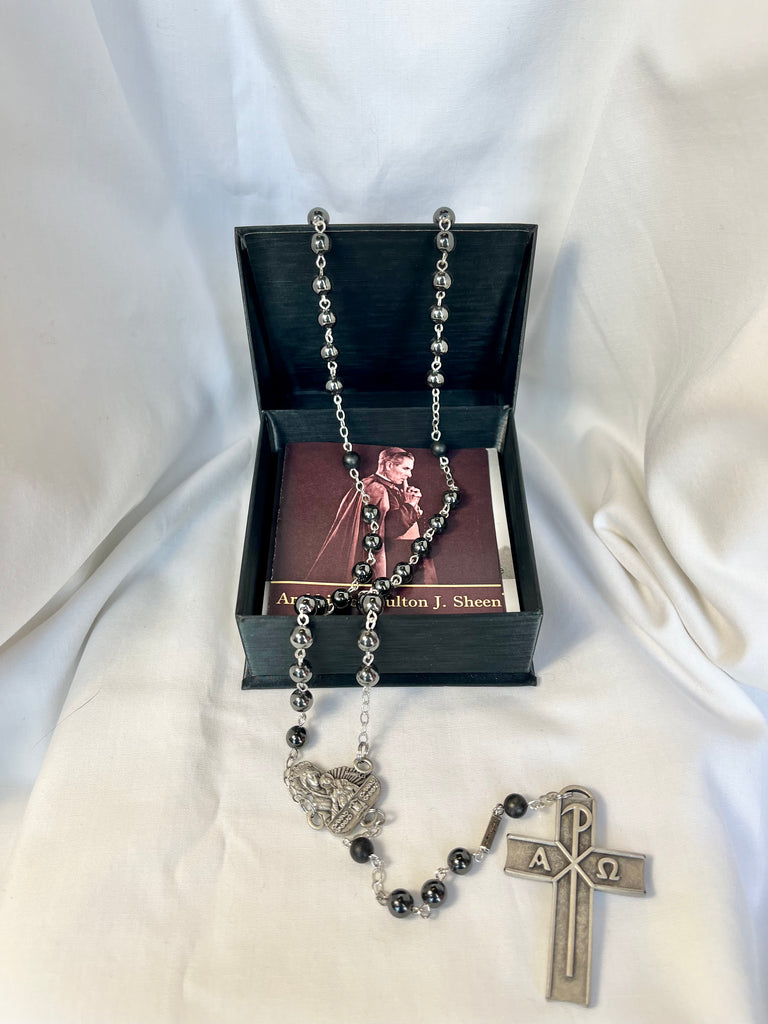 Archbishop Fulton J. Sheen Rosary- Hematite and Wood Beads