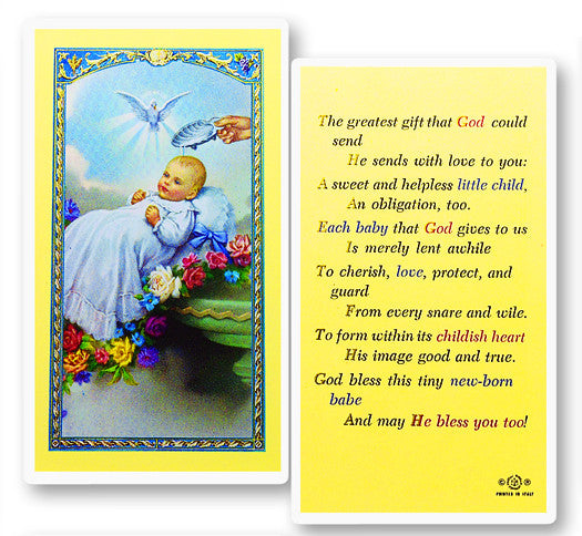 Description: Laminated Italian prayer card that features rich colors and decorative gold accents. Artwork from famous Italian line Fratelli-Bonella. Traditional prayer on the reverse side.
