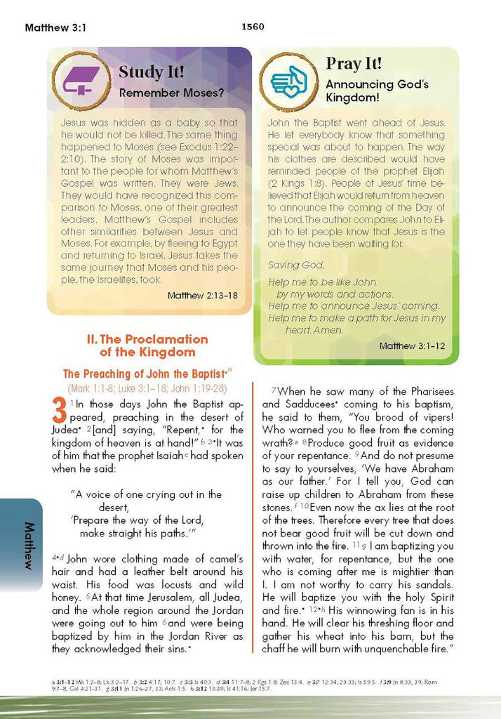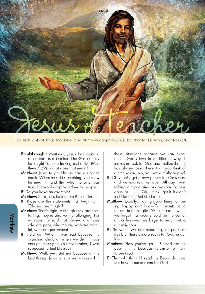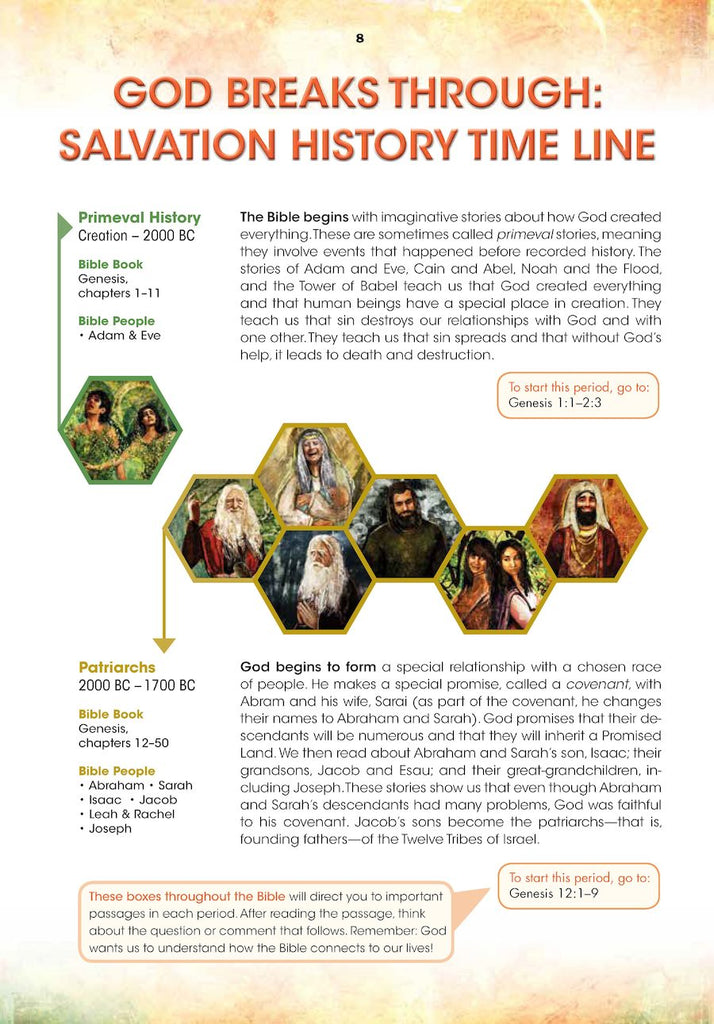 As the title suggests, Breakthrough! The Bible for Young Catholics highlights what happens throughout salvation history between God and humanity. God breaks through and connects with human history, thereby establishing a relationship with humanity.