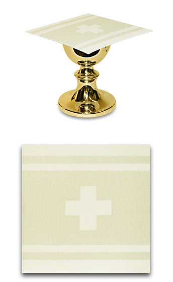 Washable sacramental mass linens make a memorable gift that formalize and celebrate the Mass Offering. This off-white cotton-blend fabric is very absorbent and easy to launder. Decorated with a cross style banding woven directly into the fabric. Complete gift box set includes; Purificator, Lavabo Towel, Chalice Pall and Corporal. Items also available for purchase individually.