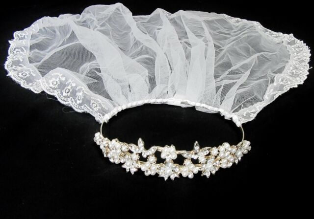This beautiful girl's tiara veil comes in a box . A beautiful formal accessory for any flower girl or any girl's First Communion!