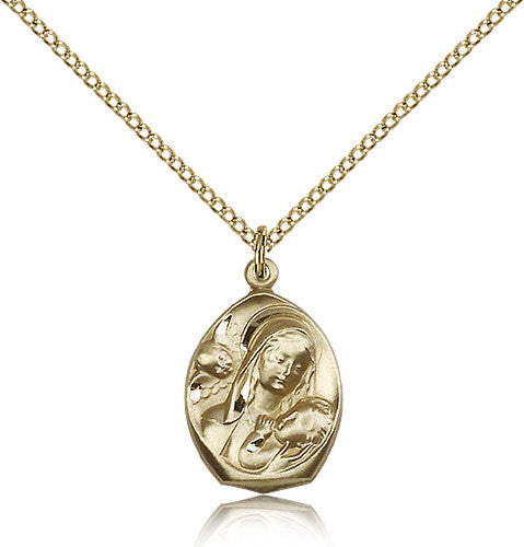 Gold Filled Madonna and Child Medal with Chain Pendant