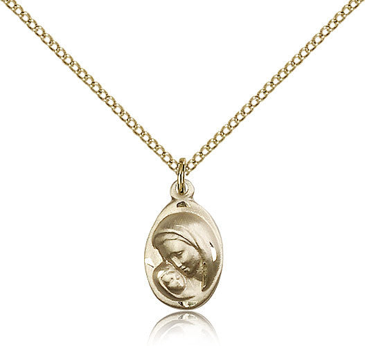 Gold Filled Madonna and Child Medal with Chain Pendant