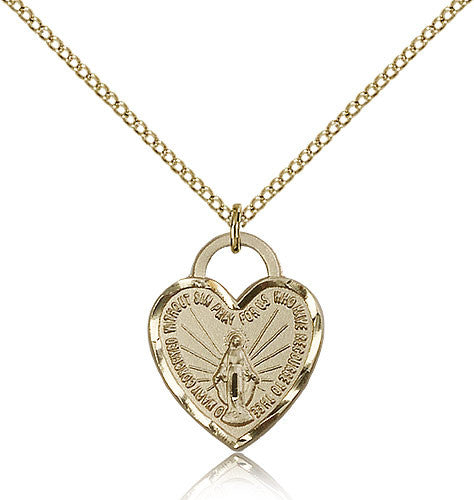 Gold Filled Miraculous Heart Medal with Chain Pendant
