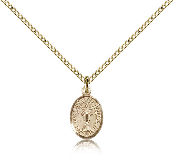 Gold Filled Our Lady of All Nations Medal with Chain Pendant