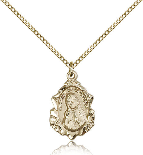 Gold Filled Our Lady of Guadalupe Medal with Chain Pendant