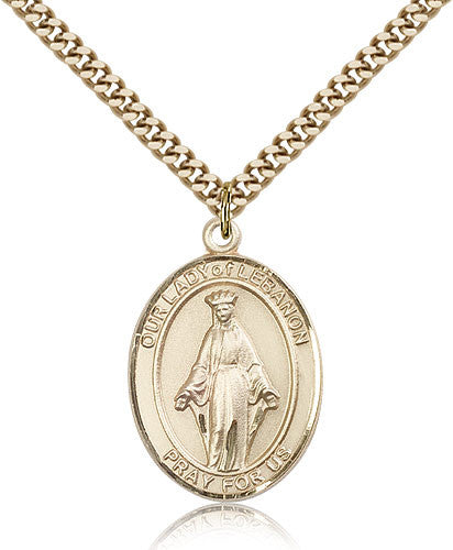 Gold Filled Our Lady of Lebanon Medal with Chain Pendant