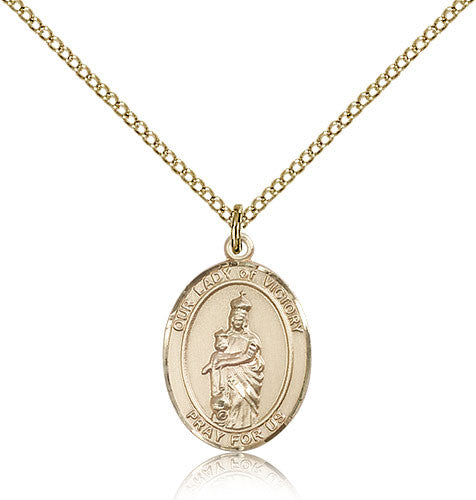 Gold Filled Our Lady of Victory Medal with Chain Pendant