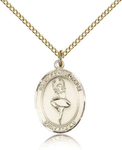Gold Filled St. Christopher - Dance Medal with Chain Pendant