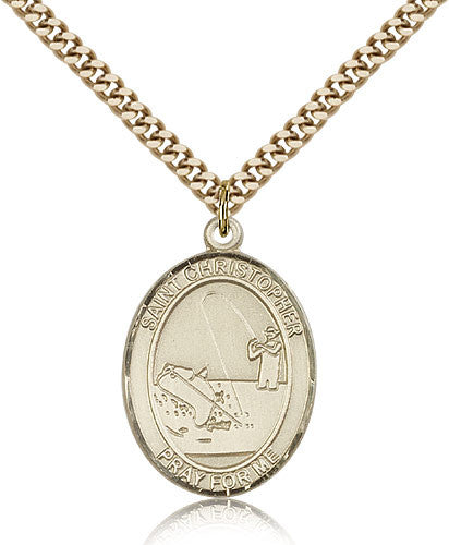 Gold Filled St. Christopher - Fishing Medal with Chain Pendant