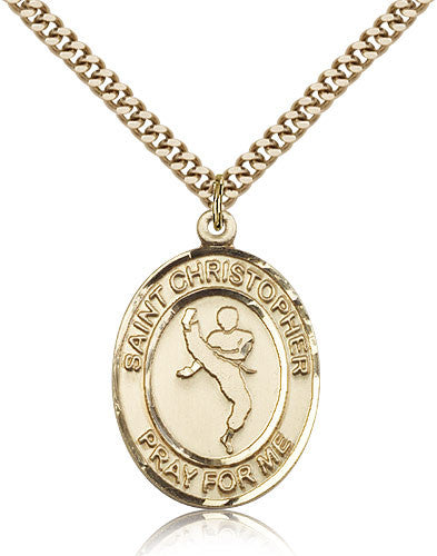 Gold Filled St. Christopher - Martial Arts Medal with Chain Pendant