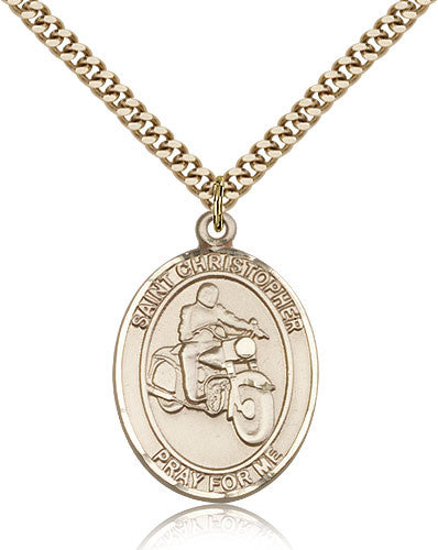 Gold Filled St. Christopher - Motorcycle Medal with Chain Pendant