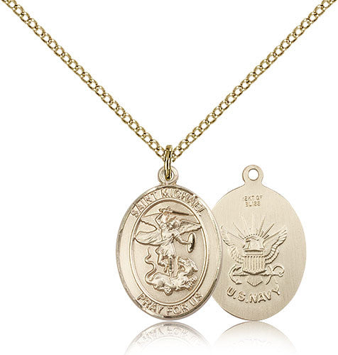 Gold Filled St. Michael - Navy Medal with Chain Pendant