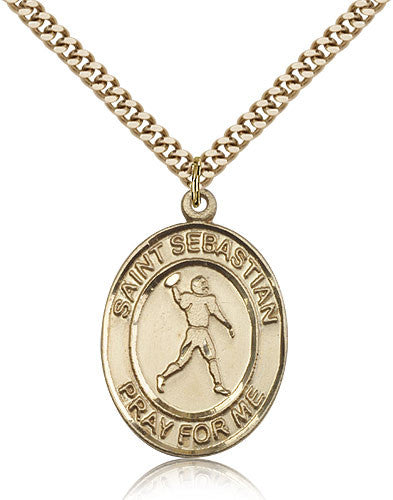 Gold Filled St. Sebastian - Football Medal with Chain Pendant