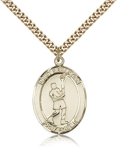Gold Filled St. Sebastian - LaCrosse Medal with Chain Pendant