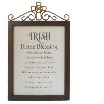 This Irish Home Blessing wall decor is framed with metal ornamentation and flourish on the top. Ready to Hang.