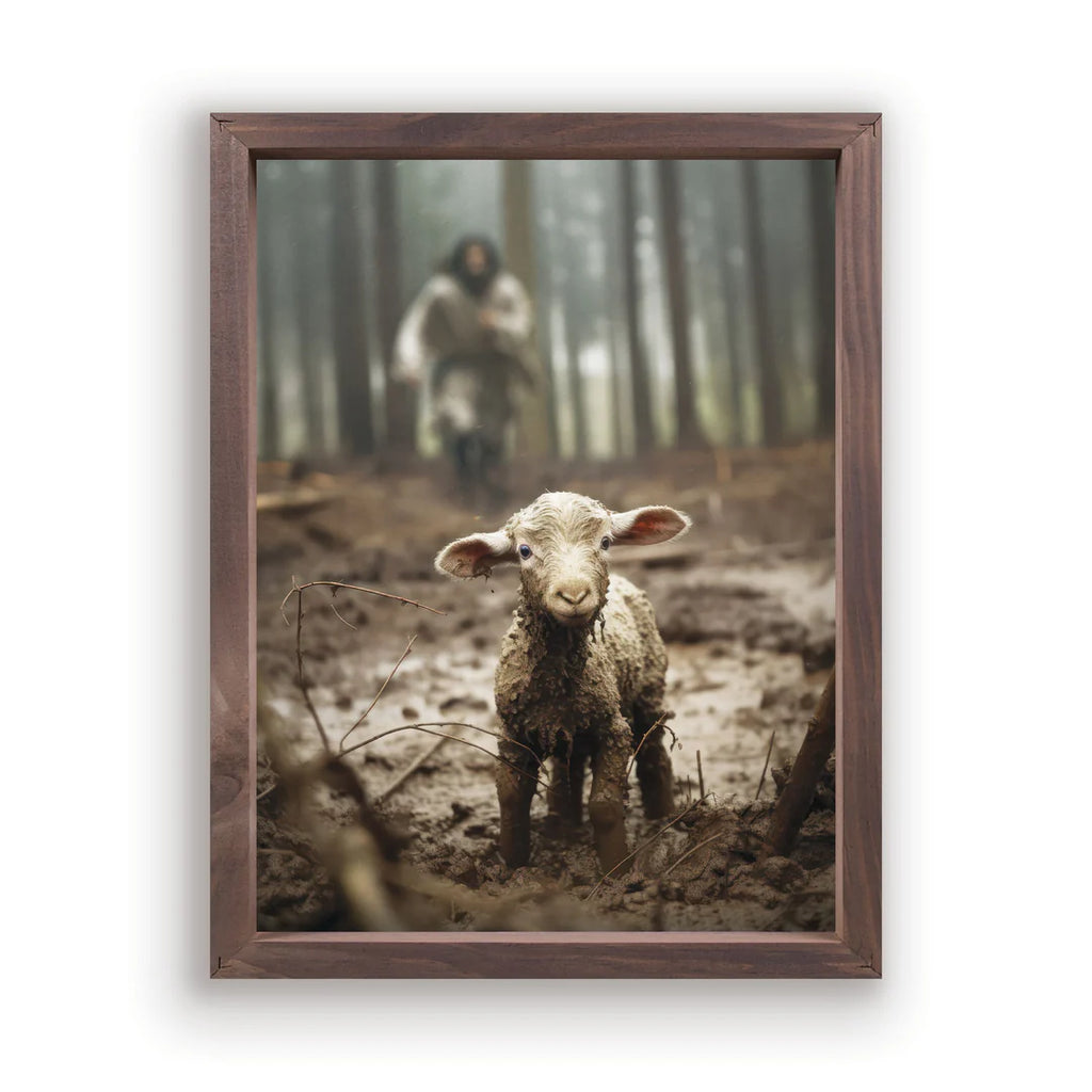 Jesus Running After A Lost Lame Framed Art is applied to primed, textured linen giving the piece the look and feel of hand painting. Distinguished, wood frames surround each piece and feature a dark brown finish. Proudly made in the USA, in the heart of Ohio's Amish Country. This artwork is a great addition to any home!