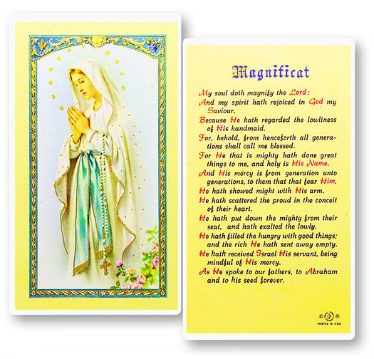 Description: Laminated Italian prayer card that features rich colors and decorative gold accents. Artwork from famous Italian line Fratelli-Bonella. Traditional prayer on the reverse side.