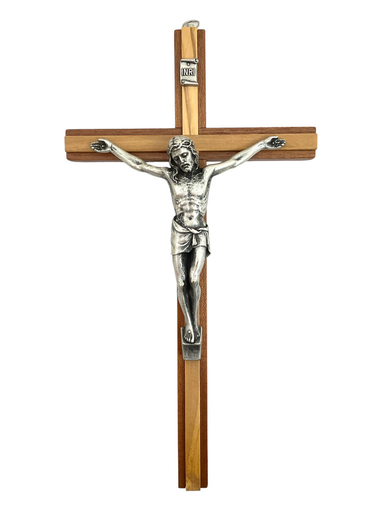 The 12" Mahogany and Olive Wood Crucifix is a great touch to your own wall or makes a great gift!