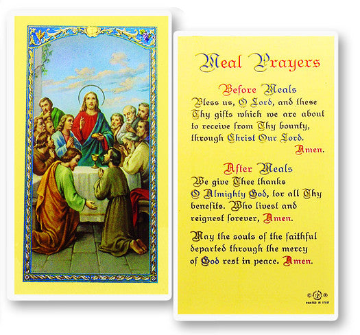 Description: Laminated Italian prayer card that features rich colors and decorative gold accents. Artwork from famous Italian line Fratelli-Bonella. Traditional prayer on the reverse side.