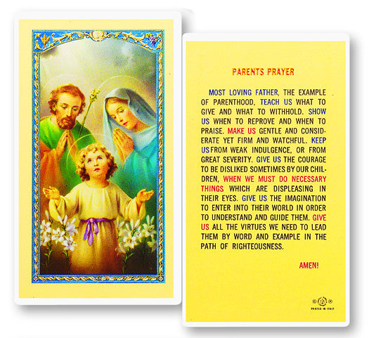 Description: Laminated Italian prayer card that features rich colors and decorative gold accents. Artwork from famous Italian line Fratelli-Bonella. Traditional prayer on the reverse side.