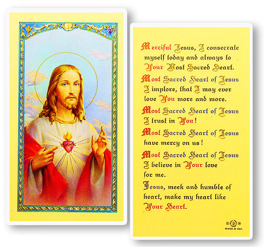 Description: Laminated Italian prayer card that features rich colors and decorative gold accents. Artwork from famous Italian line Fratelli-Bonella. Traditional prayer on the reverse side.