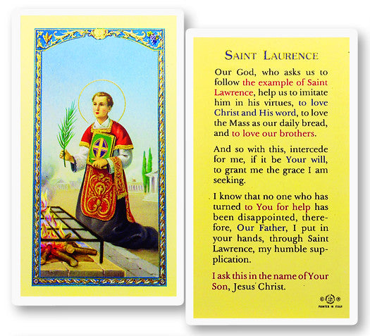 Description: Laminated Italian prayer card that features rich colors and decorative gold accents. Artwork from famous Italian line Fratelli-Bonella. Traditional prayer on the reverse side.