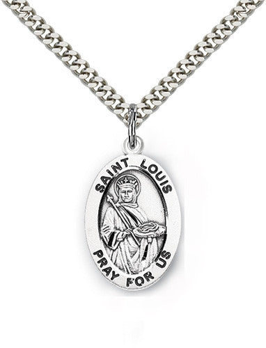 Description: Sterling Silver Patron Saint Medal gift boxed in a deluxe jewelry box that makes a wonderful gift presentation. These medals are constructed from original die work designs created in the early 1900's. Excellent craftsmanship and beautiful vintage design. Supplied with a 20" Rhodium plated clasp closure chain.