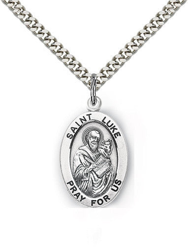Description: Sterling Silver Patron Saint Medal gift boxed in a deluxe jewelry box that makes a wonderful gift presentation. These medals are constructed from original die work designs created in the early 1900's. Excellent craftsmanship and beautiful vintage design. Supplied with a 20" Rhodium plated clasp closure chain.