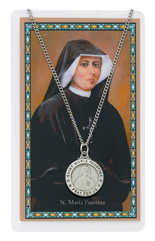 This pewter medal is attached to a 18" silver tone chain and includes a laminated holy card. This set makes a great gift for confirmation or any occasion!