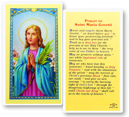Description: Laminated Italian prayer card that features rich colors and decorative gold accents. Artwork from famous Italian line Fratelli-Bonella. Traditional prayer on the reverse side.