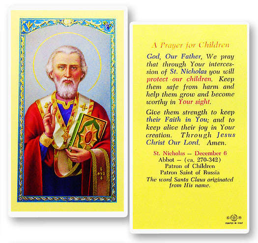 Description: Laminated Italian prayer card that features rich colors and decorative gold accents. Artwork from famous Italian line Fratelli-Bonella. Traditional prayer on the reverse side.