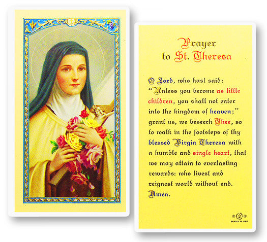 Description: Laminated Italian prayer card that features rich colors and decorative gold accents. Artwork from famous Italian line Fratelli-Bonella. Traditional prayer on the reverse side.