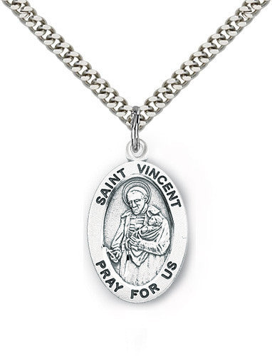 Description: Sterling Silver Patron Saint Medal gift boxed in a deluxe jewelry box that makes a wonderful gift presentation. These medals are constructed from original die work designs created in the early 1900's. Excellent craftsmanship and beautiful vintage design. Supplied with a 20" Rhodium plated clasp closure chain.