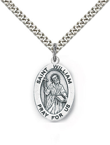 Description: Sterling Silver Patron Saint Medal gift boxed in a deluxe jewelry box that makes a wonderful gift presentation. These medals are constructed from original die work designs created in the early 1900's. Excellent craftsmanship and beautiful vintage design. Supplied with a 20" Rhodium plated clasp closure chain.