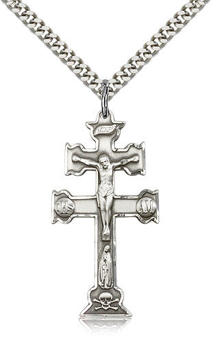 Sterling Silver Caravaca Medal with Chain Pendant