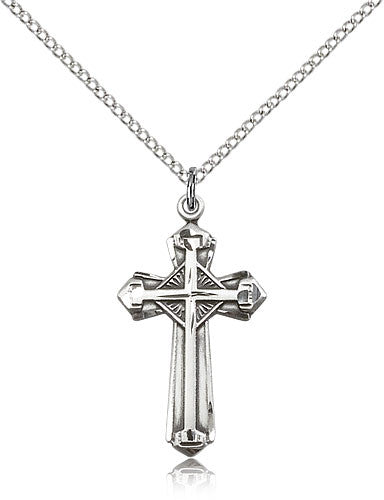 Sterling Silver Cross Medal with Chain Pendant