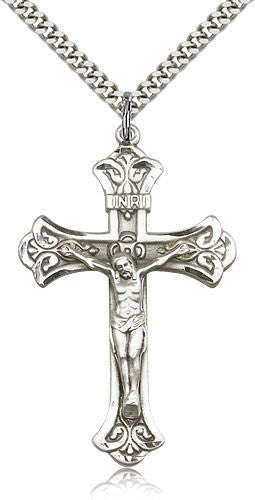Sterling Silver Crucifix Medal with Chain Pendant