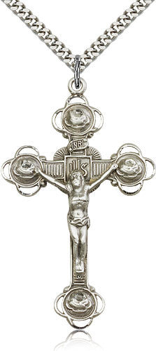 Sterling Silver Crucifix Medal with Chain Pendant