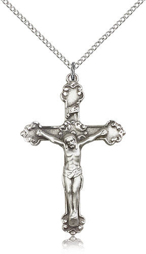 Sterling Silver Crucifix Medal with Chain Pendant