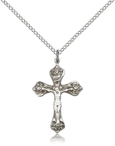 Sterling Silver Crucifix Medal with Chain Pendant