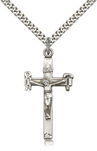 Sterling Silver Crucifix Medal with Chain Pendant