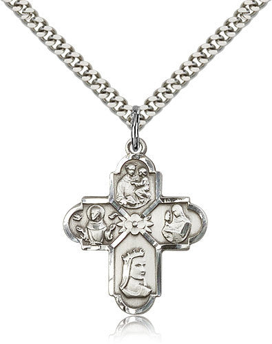 Sterling Silver Four Way Franciscan Medal with Chain Pendant