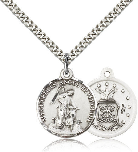 Sterling Silver Guardian Angel Air Force Medal with Chain Pendant