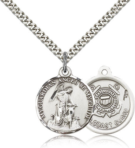 Sterling Silver Guardian Angel Coast Guard Medal with Chain Pendant